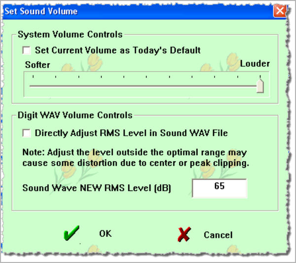 setting. The RMS level of sounds is fixed at 65 dB (digit form) in the default setting. If